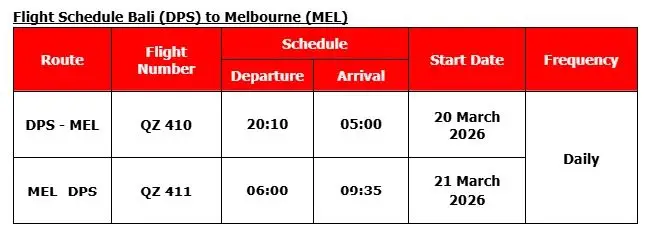 Tickets for the Bali–Melbourne route will be available for booking starting 10 December 2025. The new service is positioned to meet growing travel demand between Indonesia and Australia, with Bali serving as a key international tourism gateway and Melbourne known globally for its arts, culture, and culinary scene.