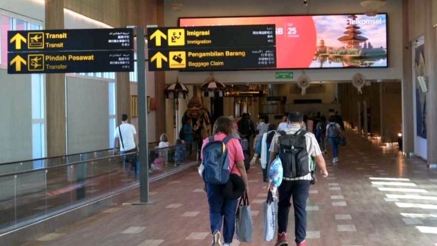 Passengers walk through the arrival area at Ngurah Rai International Airport in Bali, where health screening measures have been intensified.