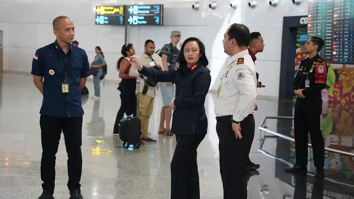 Bali Immigration officials conduct an inspection at the international terminal of Ngurah Rai Airport following flight cancellations affecting foreign travelers.