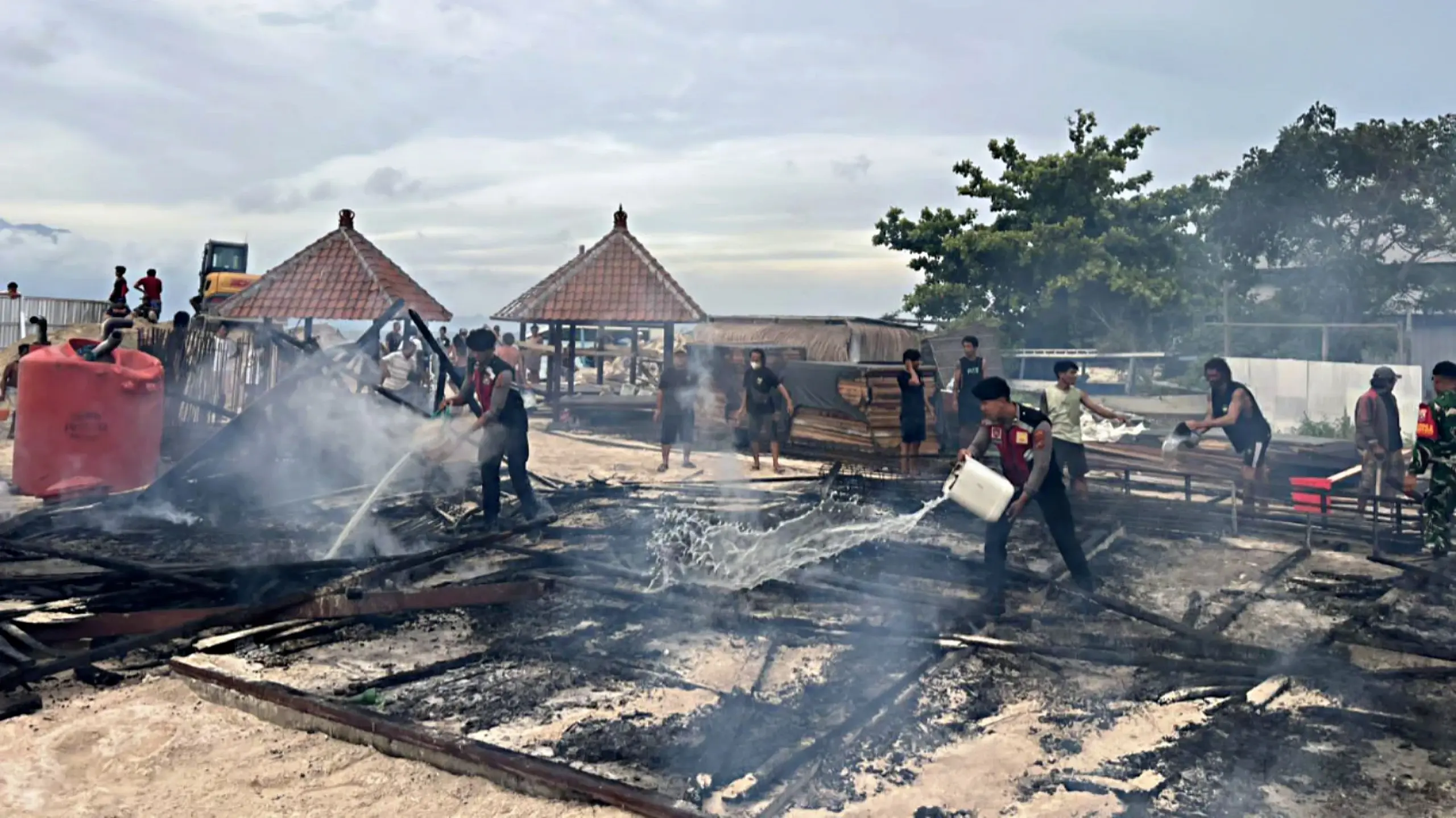The incident occurred at around 17:00 WITA. Due to the building’s structure, which largely consisted of wood, the fire spread rapidly and completely engulfed the kiosks located along the shoreline.