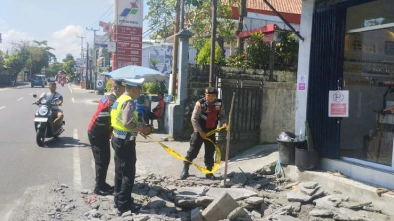 The blast occurred at around 08:50–09:00 WITA in front of a fuel station in Darmasaba, surprising nearby residents. The explosion cracked and destroyed sections of the sidewalk, with damage reported across multiple and extending up to around 50 meters in total.