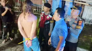 A foreign national was detained by police after causing concern among local residents while carrying several bladed weapons in the Kuta area of Badung Regency on Tuesday night (March 3, 2026).